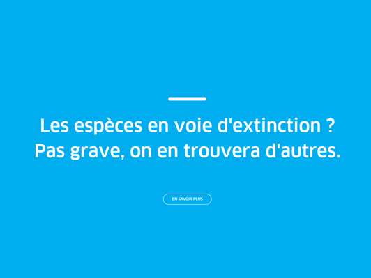 - Les espèces en voie d’extinction ? Pas grave, on en trouvera d’autres.